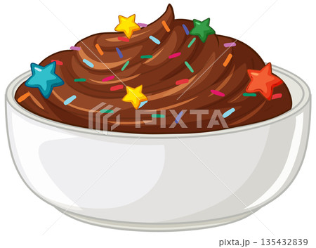 Chocolate Pudding in a White Bowl with Colorful Star Sprinkles