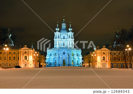 St. Nicholas Cathedral in Saint-Petersburg at night.