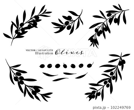 オリーブの実と枝のベクターイラスト・シルエット