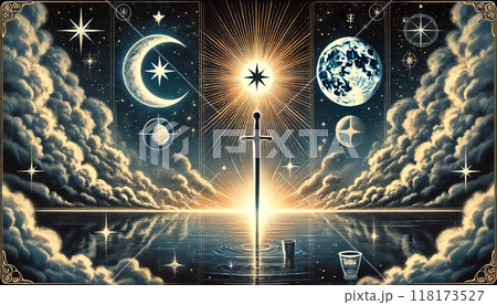 タロットカードの象徴的なシンボルを取り入れたイラスト