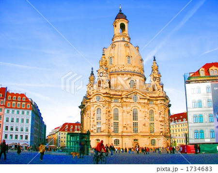 ドイツ ドレスデン フラウエン教会とマルティン・ルター像