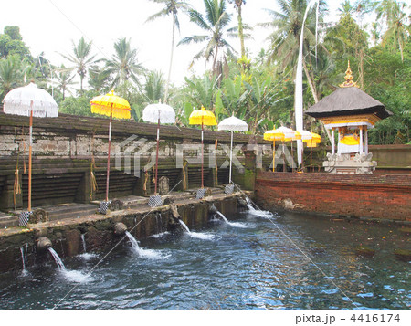 インドネシア バリ島 ティルタ・エンプル寺院の境内でたたずむ人 お祈りする人々