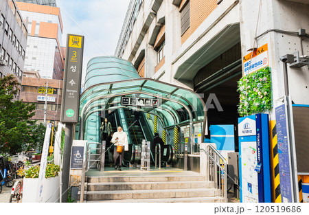 地下鉄2号線 聖水駅の出入口とハンドメイドシューズ通り【韓国/ソウル】