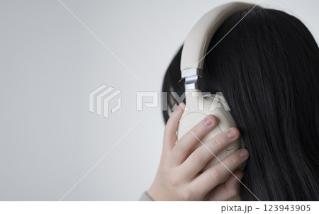 ヘッドホンで音を聞く女の子。音楽、音、聞く、学習、ラジオ、勉強など