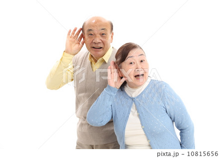 耳に手を当てて聞くシニア夫婦