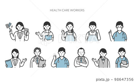 福祉、医療従事者の上半身アイコンセット