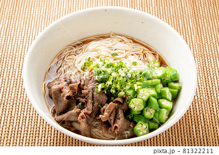牛肉とオクラのぶっかけそうめん。