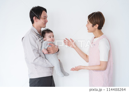 保育園に赤ちゃんを預けるパパ
