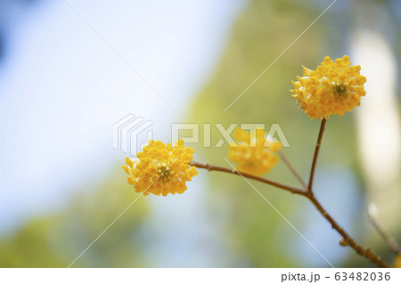 樹皮は和紙の原料になるミツマタの開花が近い画像
