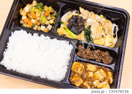 美味しい中華弁当、豚肉とキクラゲの卵炒め、麻婆豆腐など付き