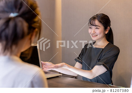 サロン・クリニックの受付でカウンセリング(パソコン)