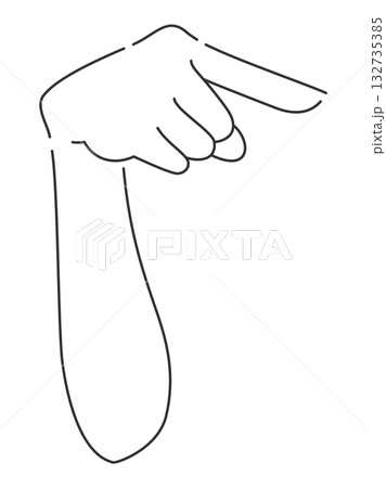 斜め下方向に指差しの手・腕・肘 手の甲側