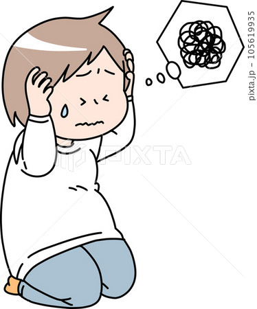 頭を抱える肥満体型の男性