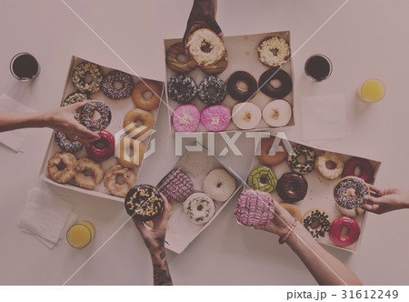 Diversity People Hands Reach for Doughnuts