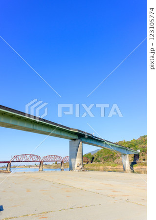 肥薩おれんじ鉄道線 球磨川橋梁 遙拝八の字広場「はくはいはちのじひろば」熊本県八代市渡町