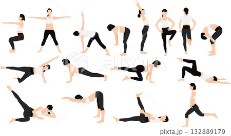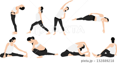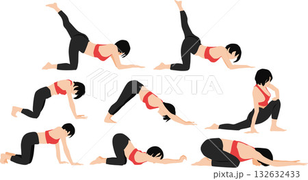 ダイエットする女性のイラストセット(ストレッチ)