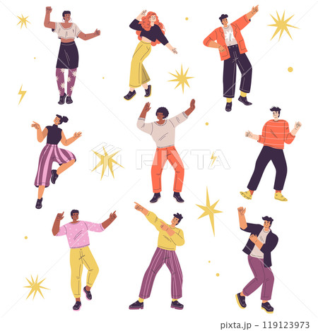 Dancing People Character in Rhythmic Movement Pose Vector Set