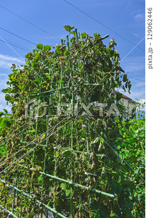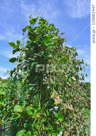 落雷の感電と竜巻で一瞬で片側だけ枯れたモロッコいんげん