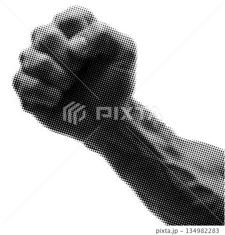 Raised Fist Halftone Symbolizing Protest and Strength