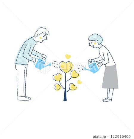 ハートの木に水をやる男女