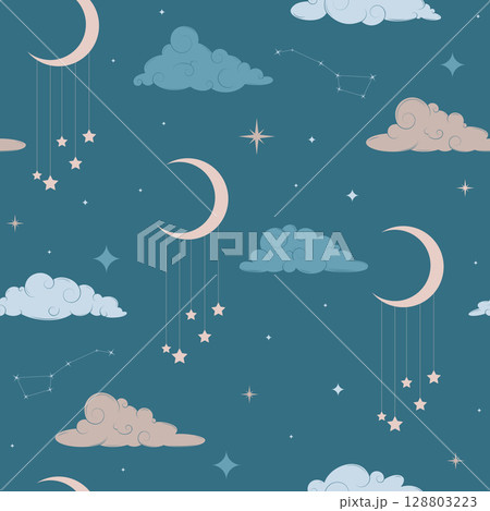 Seamless Vector Night Sky Pattern with Tiny Glowing Stars on Deep Blue Background