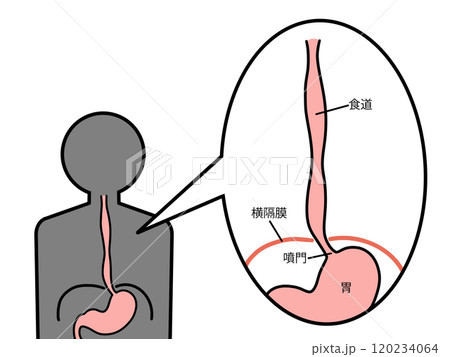 正常な食道と食道裂孔ヘルニア 滑脱型