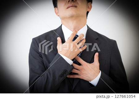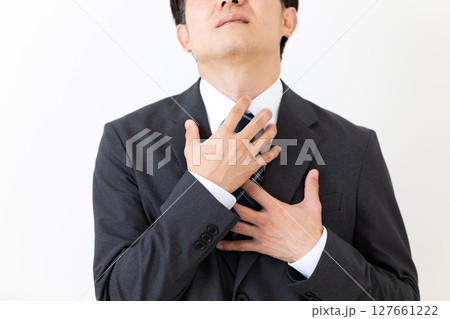 胸焼けに苦しむスーツ姿のミドル男性ビジネスマン