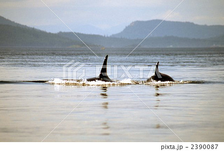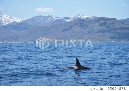 知床の海に回遊する野生のシャチ(北海道羅臼沖)