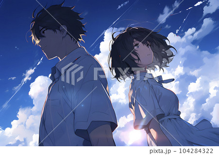 青空の下 笑顔弾け飛ぶ2人の思い出の夏(Generative AI)