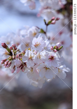 2024年春京都府八幡市背割り提の桜 春らしい光の中咲き誇る桜の花③