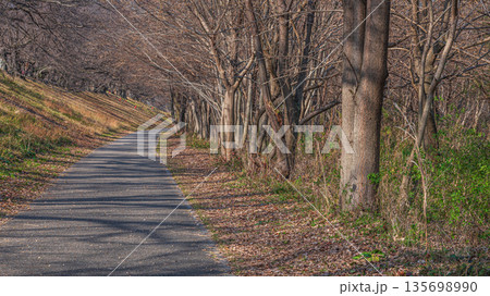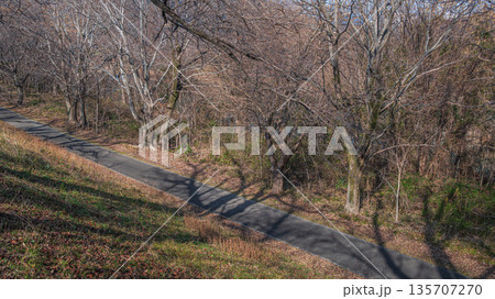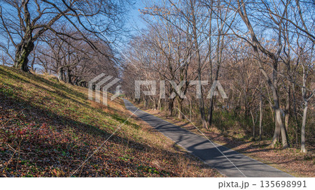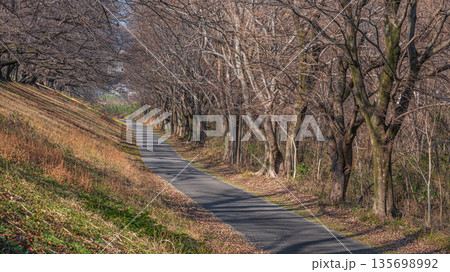 冬の背割堤 木津川河川敷の遊歩道 京都府八幡市