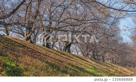木津川河川敷から眺めた背割堤冬枯れの桜並木 京都府八幡市
