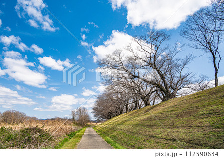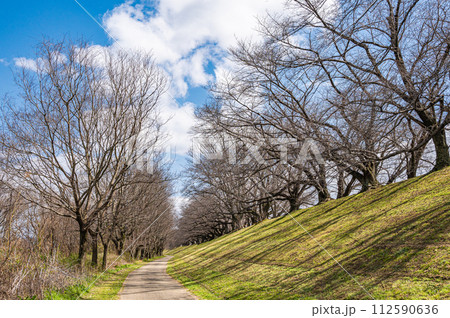 早春の背割り堤風景 京都府八幡市