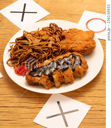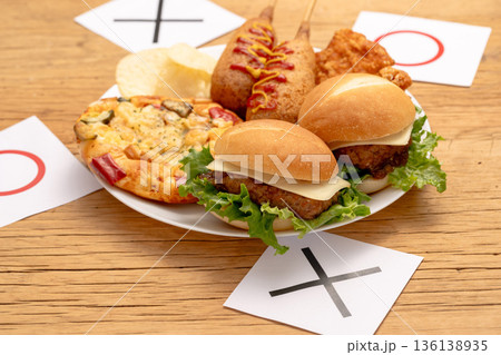 脂っこい揚げ物中心の食事選択イメージ 丸バツ