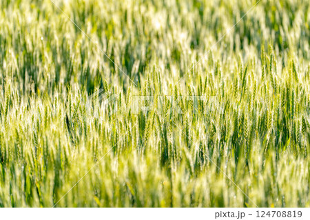 【新緑素材】朝日を受けて輝く青麦【長野県】