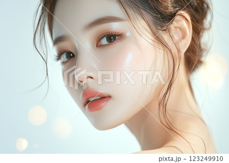 美肌の若くて可愛いアジア女性モデルの煌びやかな美容ポートレート|背景あり