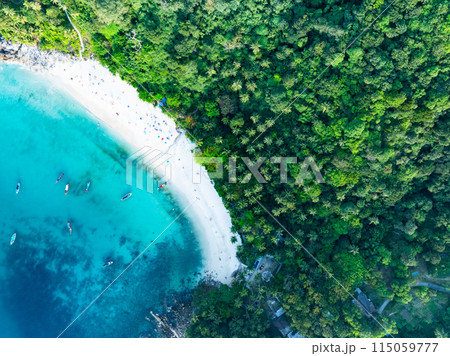 Amazing seascape view seashore and waves crashing on rocks,Aerial view beautiful sea in Phuket island Thailand