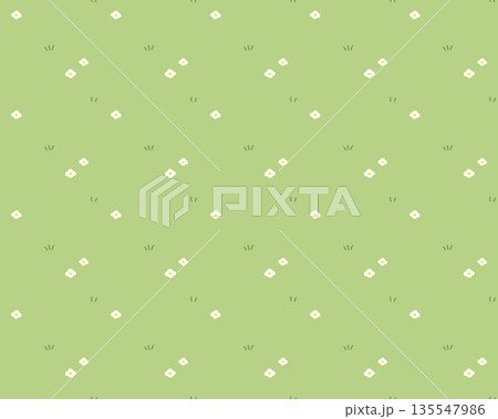絵本やアニメなどの草原をイメージした、草花柄のシームレスパターン 草と花柄模様のかわいい背景イラスト