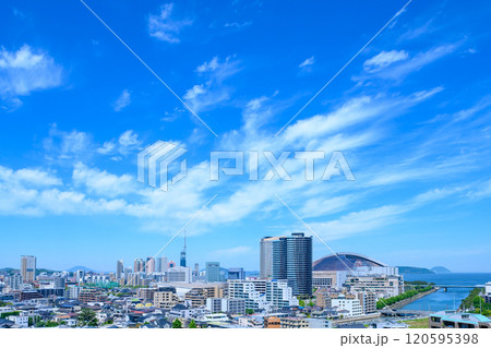 唐人町・大濠公園方面から望む早良区百道浜、地行浜、福岡タワー一帯 2024春 朝カラー