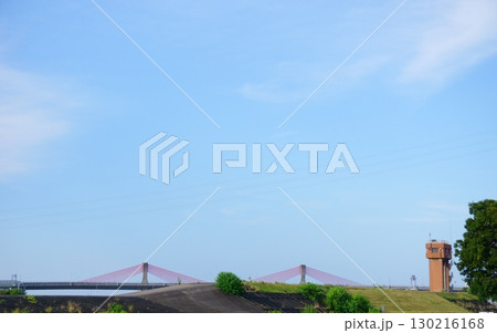 ふれあい橋から初秋の眺め 原風景 薄根川 利根郡川場村