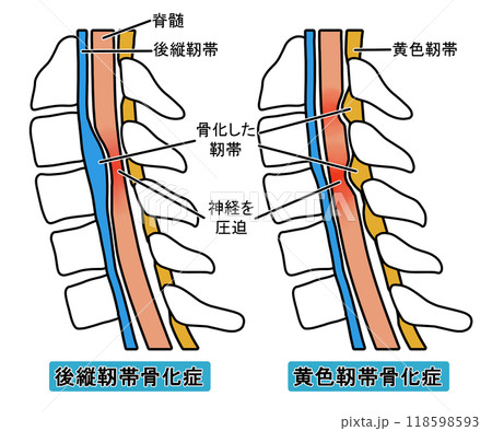 後縦靭帯骨化症と黄色靭帯骨化症(文字なし)