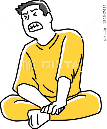 胡坐を組んで悔しがる男性
