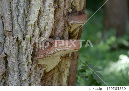 切り株に生えたキノコ サルノコシカケ(北海道帯広市)