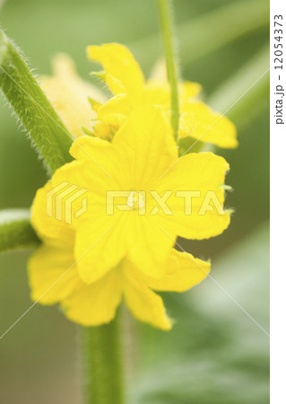 キュウリの花と葉と茎(学名:Cucumis sativus)