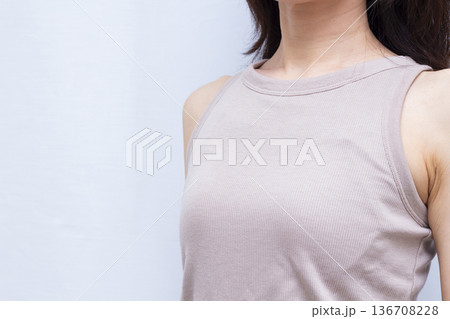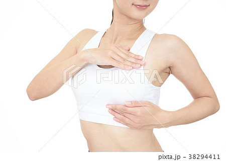 バストケアをする女性