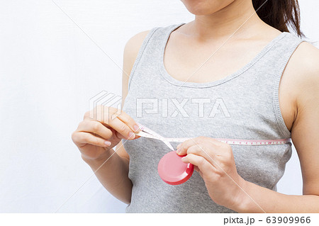 胸にメジャー(巻尺)を巻く女性のイメージ
