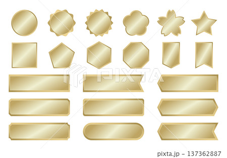 Golden luxury labels. Premium quality badges with golden stars and ribbons for product rating. Shiny stickers and seal for certificate vector set