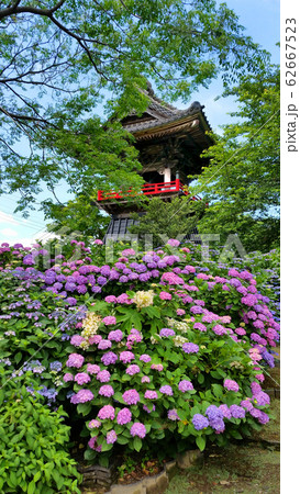 能護寺 あじさいと鐘 楼埼玉県熊谷市