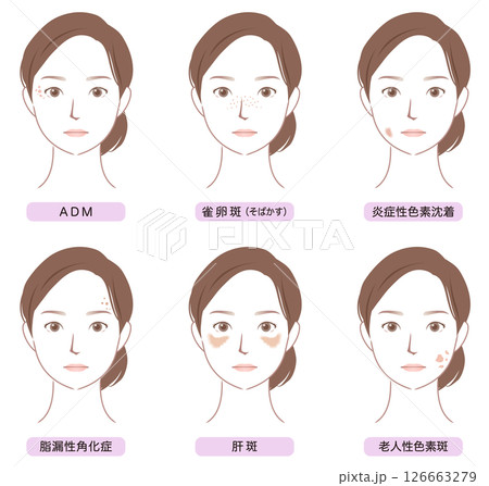 シミ・そばかすに悩む女性セット シミの種類 文字あり