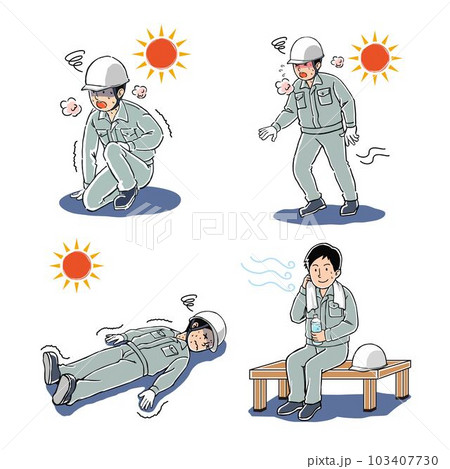 作業員 熱中症 しゃがむ ふらつく 倒れる 休憩